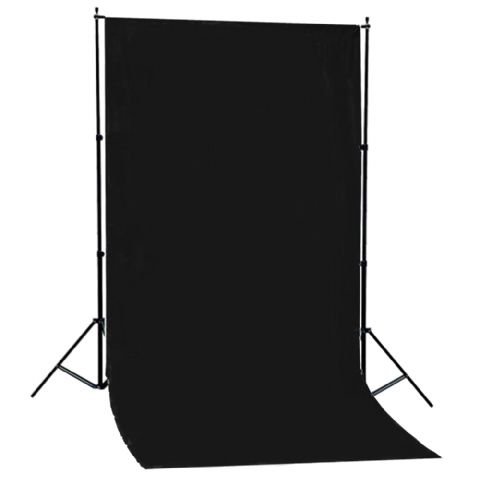 Taustakangassetti/taustakangasteline mustalla taustakankaalla (150 × 280 cm).