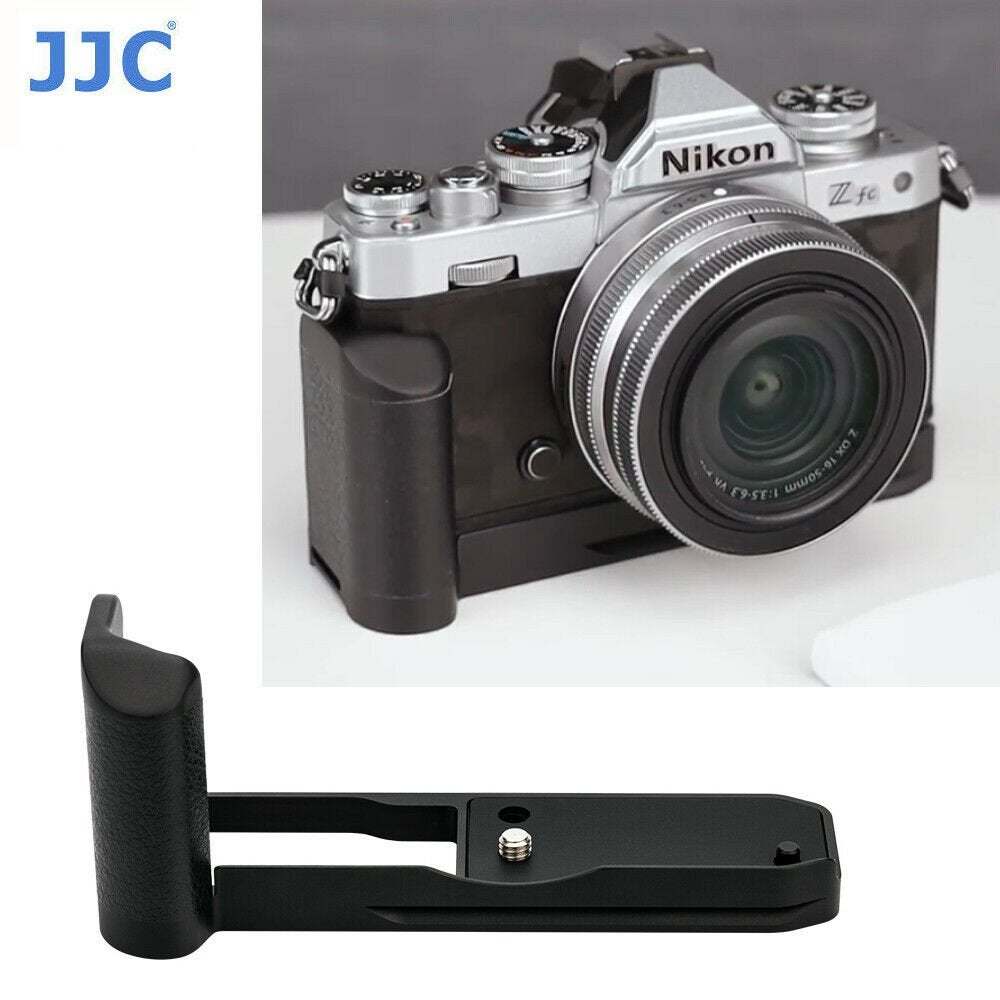 Vastaa Nikonin Hand Grip GR-1 Metallinen Hand Grip Nikon Z-fc Kameraan. Tällä osalla saat kamerasta paremman otteen ja pohjassa on Arca-Swiss yhteensopiva kisko-osa. Itse Grip-osio on kumia kuten itse kamera. Tämä on puolet halvempi kuin Nikonin oma käsikahva Nikon GR-1.