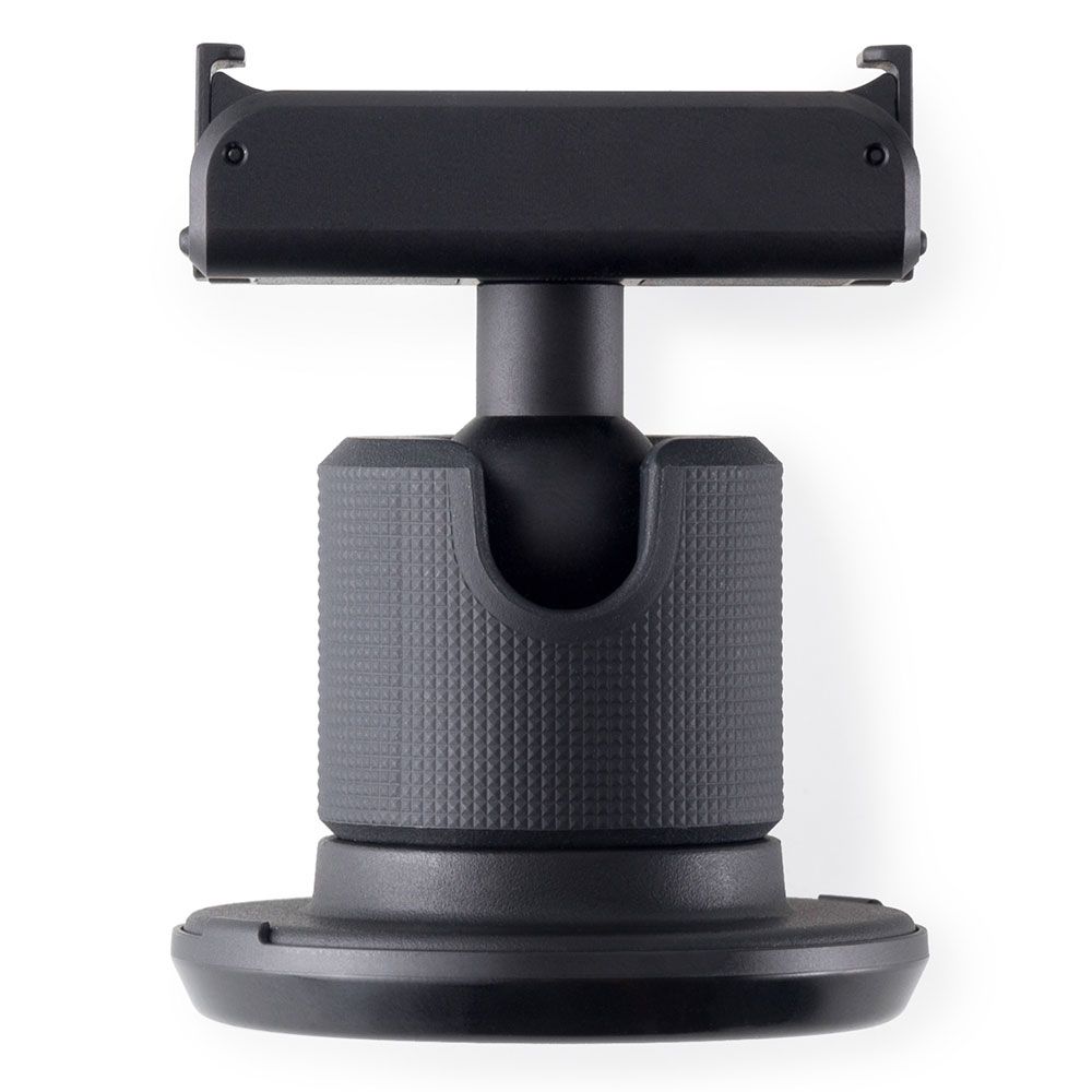 Tähän voidaan siis magneettisesti napsauttaa Action 2-kamera, jolloin kamera saadaan liimattua tasaiselle pinnalle. Kuulapään avulla saadaan kamera aina haluttuun kulmaan!