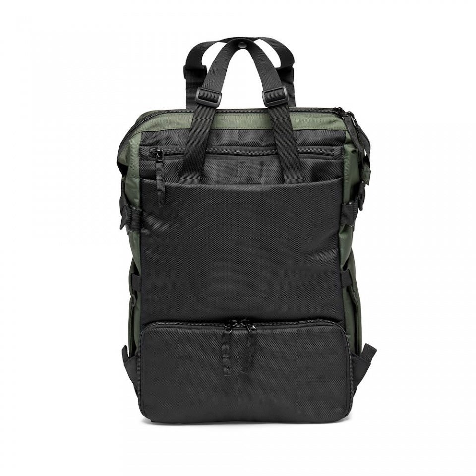 Yläosa avautuu "lääkärinlaukku" tyylisesti ja sen tilaviin sisätiloihin pakkaat niin 14" läppärin tai tabletin kuin monenmoista arkipäivän tarviketta. Alaosan uudella M-Guard™ vuorattuun kamerainserttiin mahdutat kameran objektiiveineen sekä 1-2 lisälinssiä, tai halutessasi voit ottaa koko insertin pois ja käyttää Totea päiväreppuna/laukkuna/kassina. Sivuilta löytyviin laajeneviin taskuihin mahtuu pieni jalusta tai juomapullo. Katso myös Toten sivuun kiinnittyvä Crossbody Pouch. Sisällä on lisäksi pari pienempää taskua pikkutavaralle, ja ulkopuolella yksi isompi tasku vähän isommalle pienelle tavaralle.