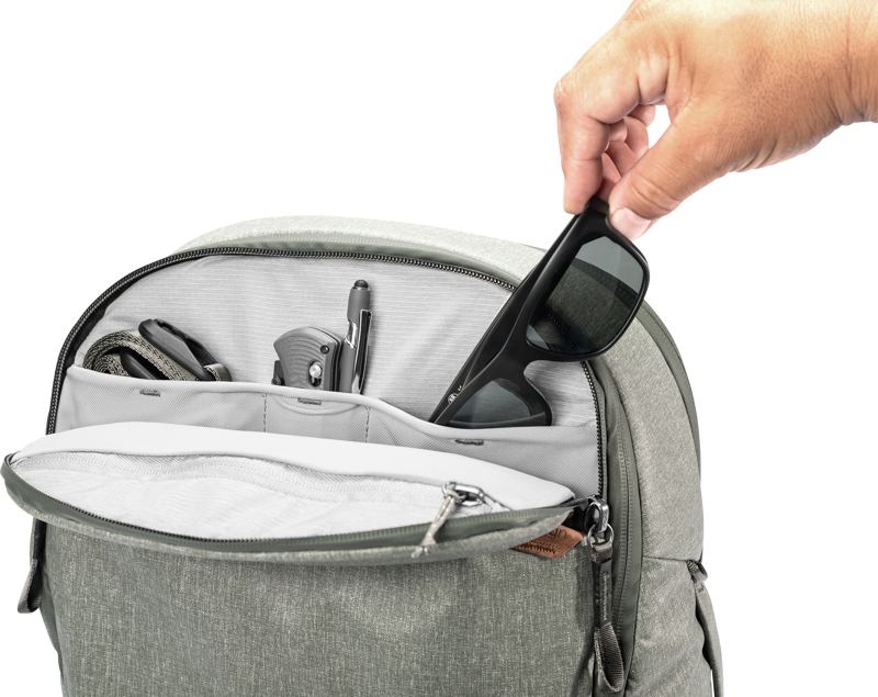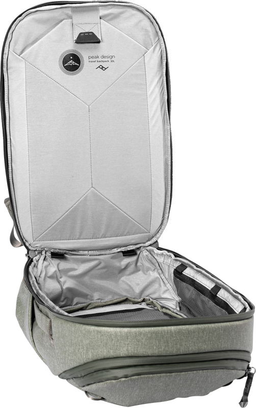 Vetoketjut repun tilavassa pääosastossa antavat mahdollisuuden nostaa tilavuuden 30 litraan, ja sisäpuolella vetoketjullinen väliseinä muodostaa valinnaisen etu- ja takaosan. Sisällön järjestämisen tehostamiseksi tarjolla on erikseen saatavilla olevia Peak Design -osastoja, jotka on erityisesti suunniteltu kameran, videon, äänen sekä vaatetuksen tai pienen elektroniikan kuljettamiseen ja säilytykseen.