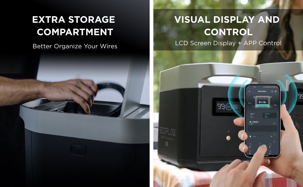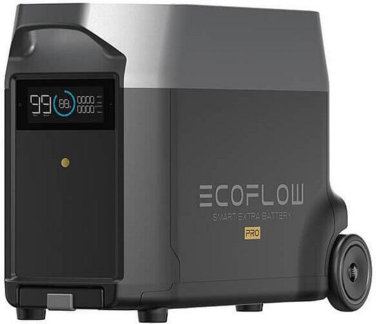 EcoFlow Delta Pro Smart Extra Battery -lisäakku, 3600 Wh. Lisäakku on oma erillinen yksikkö, joka liitetään virta-asemaan mukana toimitettavalla liitäntäkaapelilla. Yhteen Delta Pro -virta-asemaan voidaan liittää kaksi lisäakkua, jolloin akkujen kokonaiskapasiteetti on jopa 10.8 kWh.
