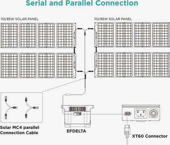 Tämä tarvitaan silloin kun haluat liittää yhden tai useamman esim EcoFlow Solar aurinkopaneelin EcoFlow Delta ja River virtapankkiin.