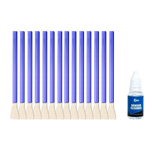 UES FFR-24-setin mukana tulee 14 kpl UES ff-kennon puhdistuslastoja sekä kennon puhdistukseen tarkoitettu 15 ml pullo UES Sensor Cleaneriä. (vastaa nestettä Visible Dust Sensor Clean / Photosol /Photographic Solutions Eclipse Optic Cleaner).