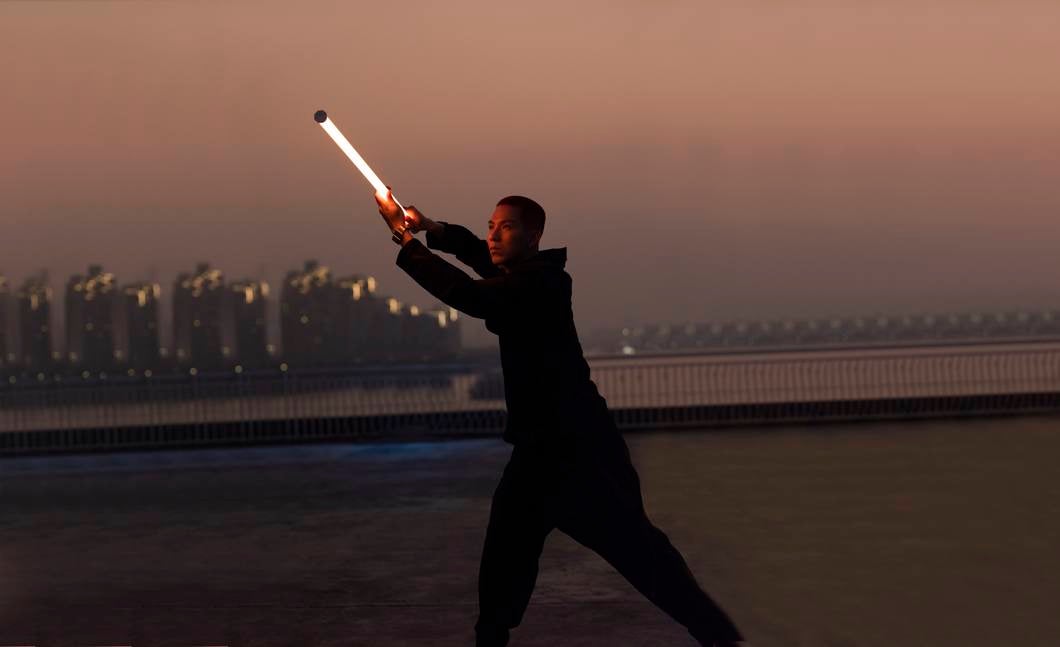 Tämän lähemmäs valomiekkaa ei varmaan enää pääsekään, sillä T8-7X on metrin pituudessaan, 280 gramman painossaan ja ergonomisine kahvoineen todellakin miekkamainen ilmestys. Oikeisiin miekkailuhommiin ei tämän kanssa kuitenkaan kannata lähteä, sillä T8-7X on parhaimmillaan tunnelmallisen valon luojana kuvauksissa tai näyttämö- ja lavastekoristeena. Suorastaan mitätön paino tarkoittaa myös sitä, että T8-7X toimii loistavasti myös yökuvausten valomaalauksessa ja sitä on helppo käsitellä missä tilanteessa tahansa.
