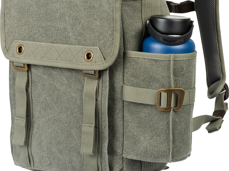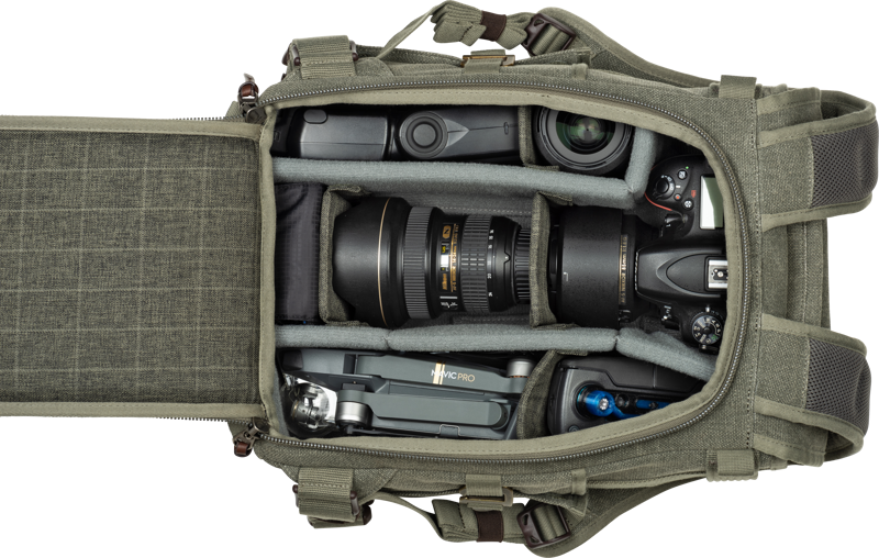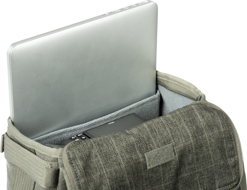 Tässä repussa on rutkasti tilaa kameravarusteille, sillä repun kokonaisvetoisuus on 20 l. Repusta löytyy lisäksi erillinen tasku, johon mahtuu 15" läppäri. Kaksi pääsyä kameravarusteisiin joko selän tai yläläpän kautta takaavat sen, että reppua voi käyttää omien mieltymysten mukaan. Voit esimerkiksi pitää kameran helposti saatavilla yläläpän alla, jolloin repun alaosaan jää vielä tilaa matkatavaroille. Repun molemmilla sivuilla on laajenevat juomapullotaskut, jonne saat mahtumaan myös pienen jalustan.