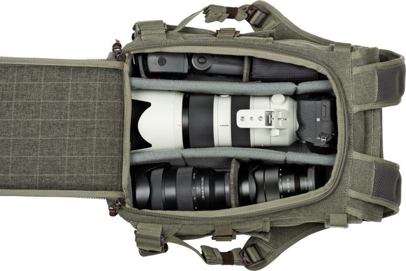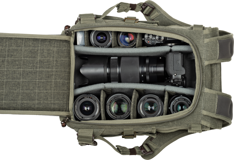 Retrospective malleissa on kestävä ja tyylikäs puuvillapinta, joka on pinnoitettu vettä hylkiväksi. Lisäksi mukana tulee myös erillinen päälle vedettävä sadesuoja parantamaan vedenpitävyyttä. Sisätiloissa on käytetty tehokkaasti iskuja vaimentavia materiaaleja ja osioita voidaan siirtää omaan makuun sopivaksi. Vetoketjullisissa taskuissa on käytetty erittäin kestäviä YKK:n vetoketjuja.