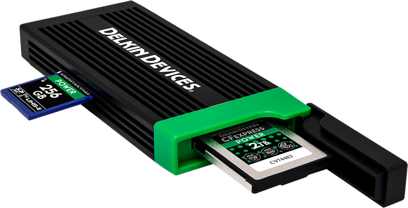 USB 3.2 CFexpress + SD -muistikortinlukija Delkin Devicesilta yhdistää kompaktin koon ja mahdollisuuden siirtää dataa päätähuimaavalla nopeudella.