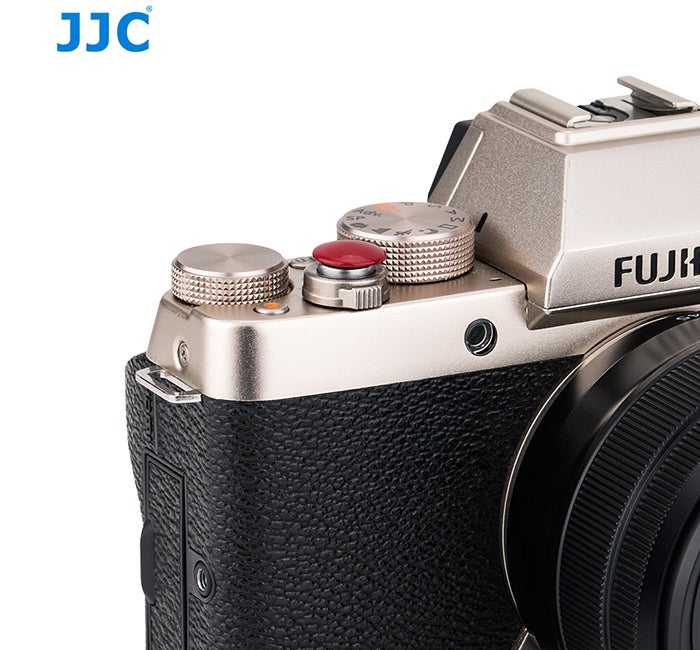 Kuperan muotoinen nappi istuu hienosti laukaisimeen. Kiinnitys tässä universaali, jos vain koko passaa! Alla siis teippipinta, jolla nappulan saa liimattua kameran oman sulkimen päälle!