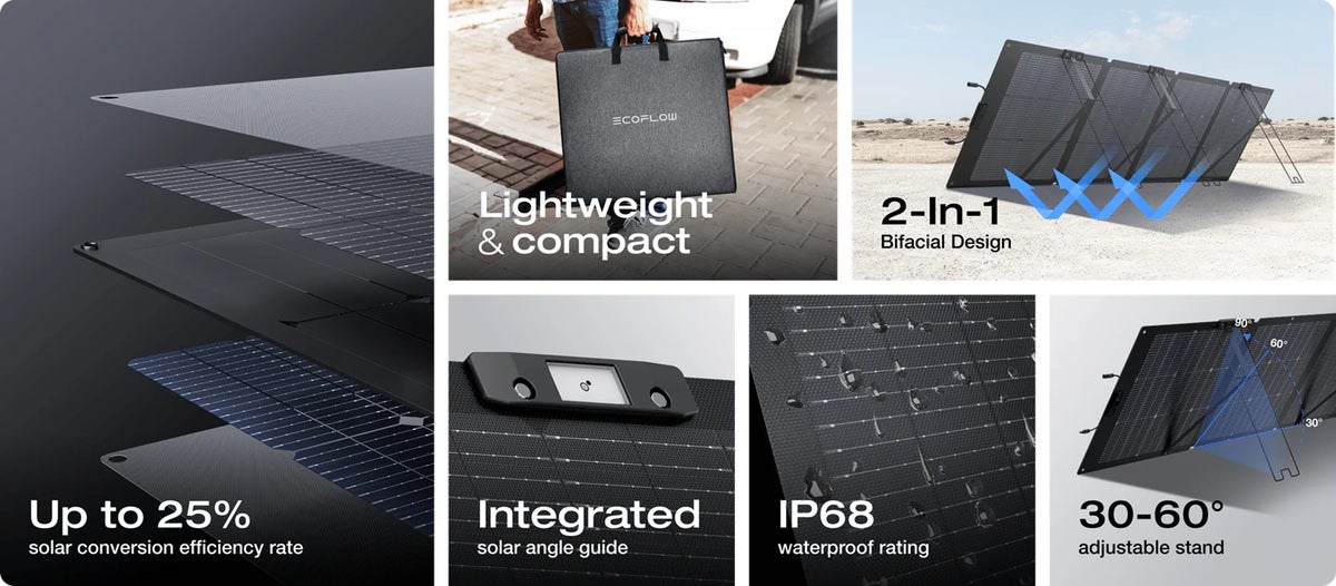 Jos haluat oikeasti ladata akkua auringossa, tarvitaan laadukas paneeli ja pinta-alaa. Tässä tuotteessa on nämä molemmat!