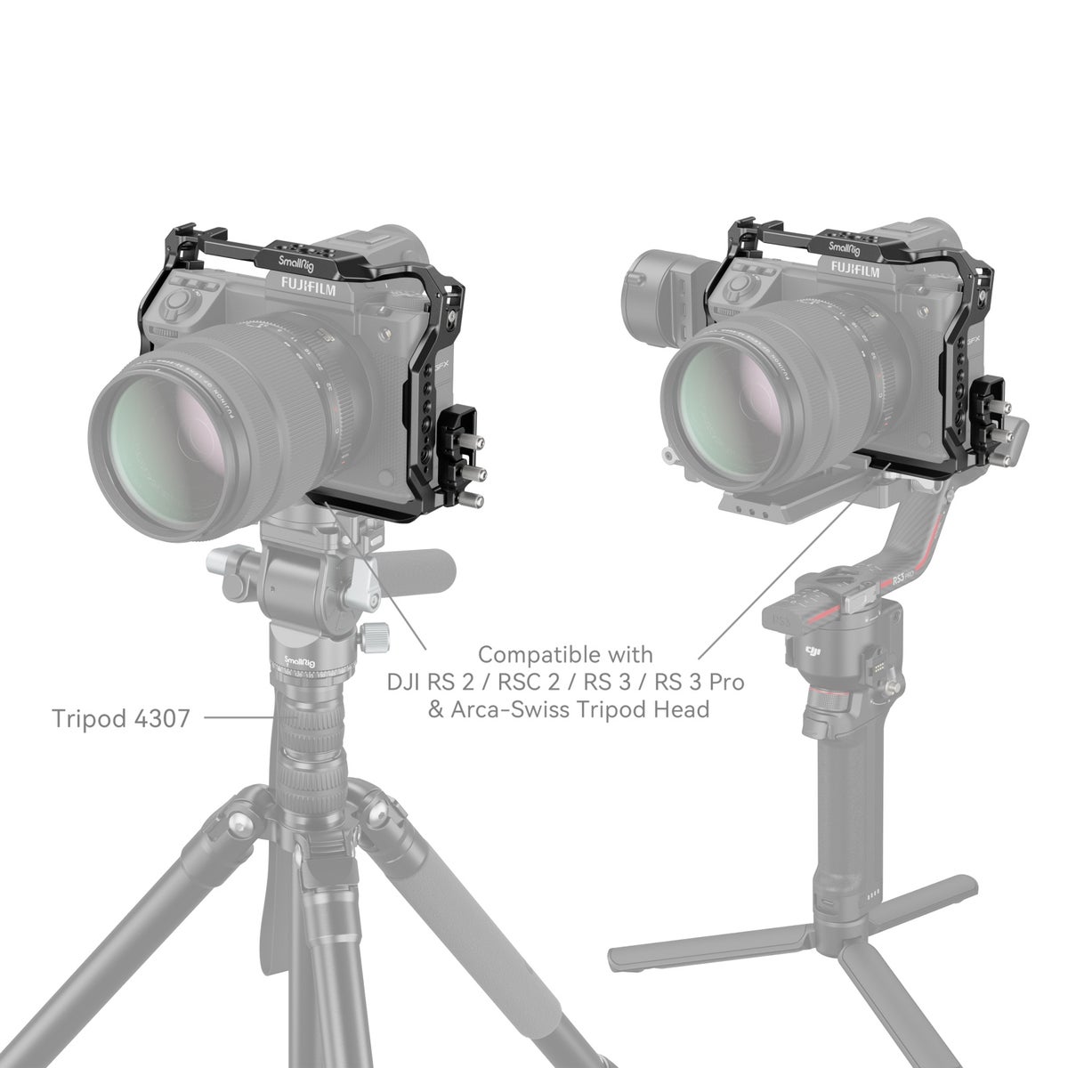 SmallRig Cage Kit for FUJIFILM GFX100 II 4201 on suunniteltu suojaamaan kameraa ja kiinnittämään lisävarusteita. Tähän kittiin sisältyy kehikko sekä HDMI- ja USB-C-kaapelin pidike.