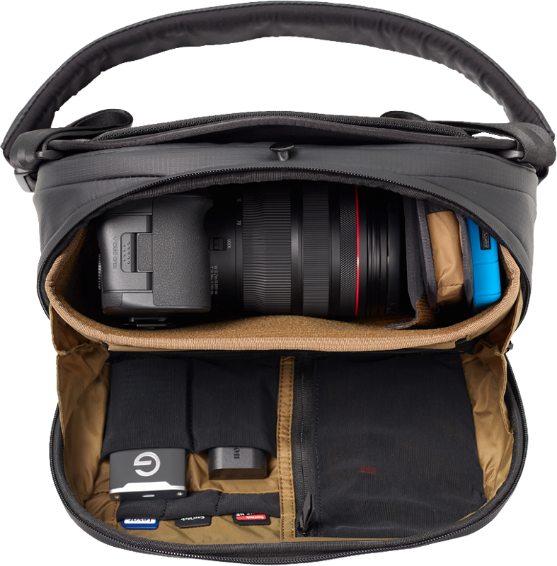 Pehmustetun hihnan ja kääntyvän olkahihnan ansiosta voit kuljettaa haluamallasi tavalla (olkalaukku, ristivartalo tai rintareppu), tämä sling-reppu on suunniteltu mahdollisimman mukavaksi. Slingin takaosassa on EVA-vaahtomuovista muotoiltu selkäpaneeli, joka takaa mukavuuden ja ilmavirran. Rullalaukun läpivienti antaa olkapäällesi lepoa matkan aikana. Slingin etu- ja alaosassa on ulkoiset molle-hihnat, jos haluat kuljettaa enemmän, kuten jalustaa tai takkia. BONUS: Sling-reppu sopii täydellisesti 35 litran kameralaukun sisälle.