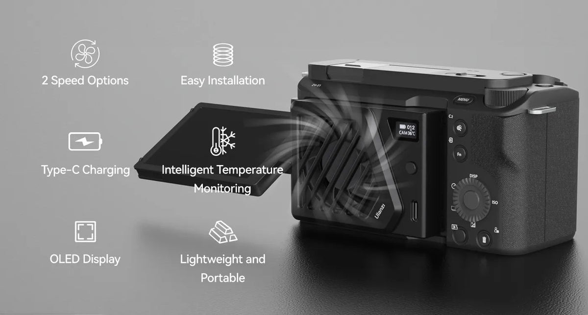 Ulanzin universaali kameratuuletin kiinnittyy kameraan vaivattomasti imukupeilla ja viilentää kuvausvehkeitä pitkien taltiointien aikana!