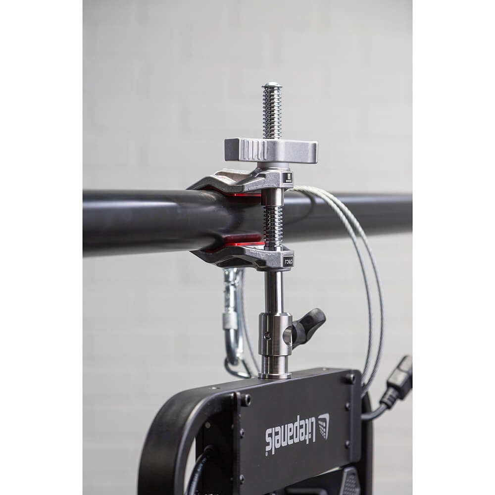 Manfrotto 3'' Center Vice Jaw Clamp-putkipuristimella kiinnität valaisimesi trusseihin tai muihin putkimaisiin rakenteisiin. Valmistaja lupaa clampille huiman 80 kg kantavuuden. Puristimesta löytyy 5/8" eli 16mm valaisinkiinnitys. Leukojen maksimileveys on 76 mm ja minimi 16 mm joten monenmoiseen putkeen tämän kiinni saa. Leukojen kumipinnoite sekä parantaa pitoa että suojaa puristettavaa kohdetta.