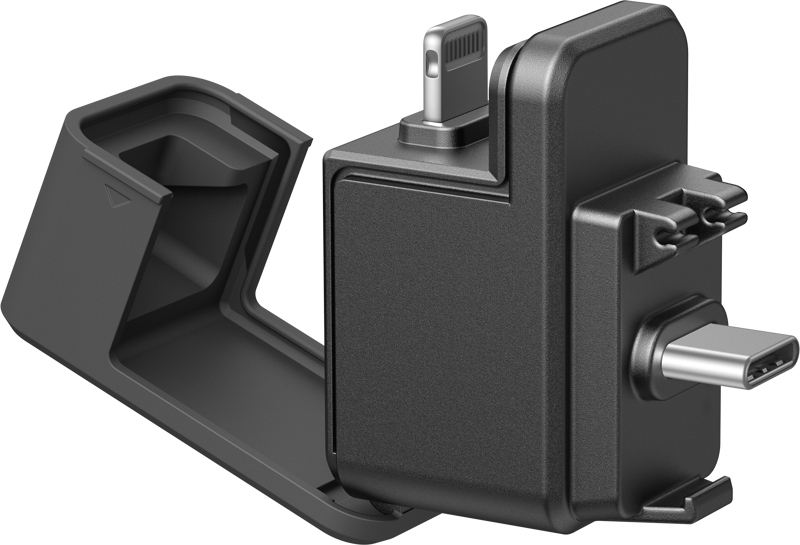 Quick Reader on kahdella liittimellä (USB-C ja Lightning) varustettu kompakti lisävaruste, joka liitetään suoraan Insta360 X5 kameraan ja mobiililaitteisiin. Se on yhteensopiva sekä Android että Apple laitteiden kanssa.