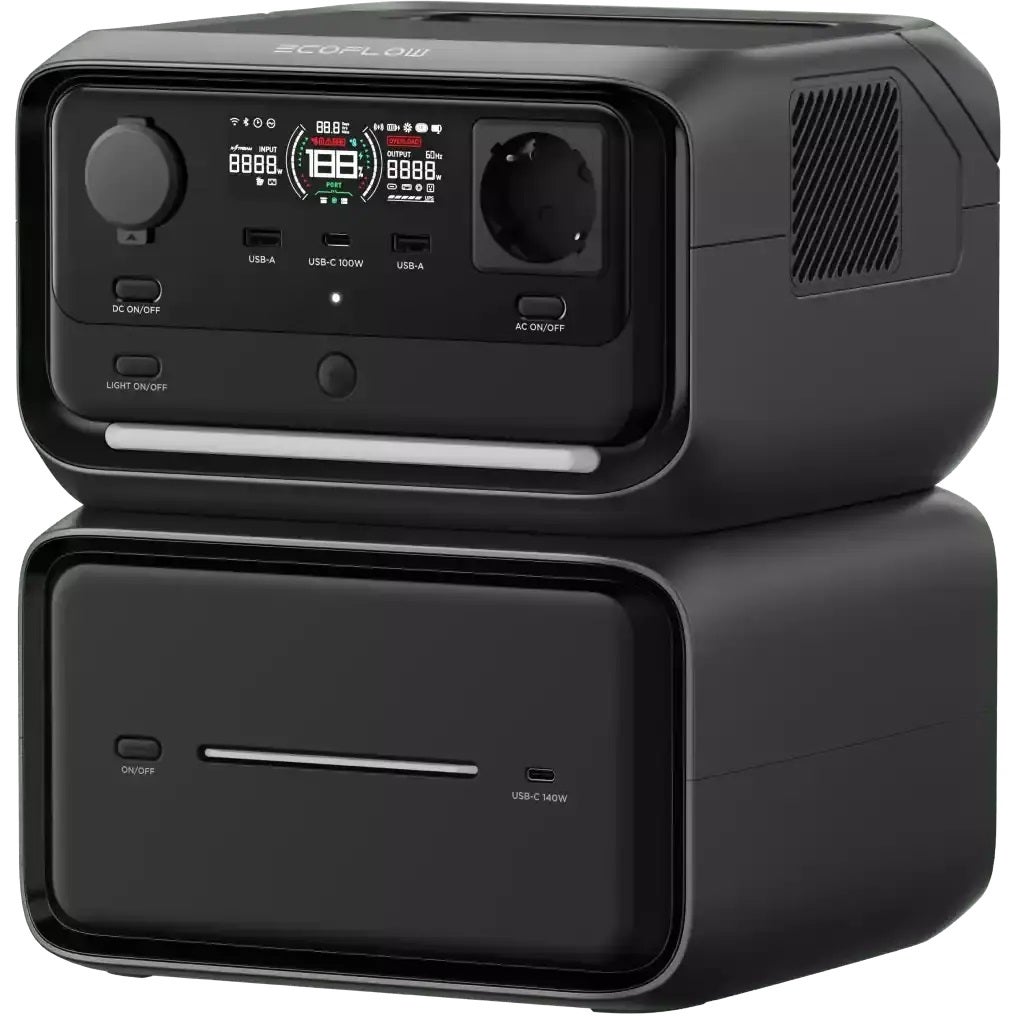 River 3 Max Plus sisältää River 3 Max varavirtalähteen ja EB600 ekstra-akun. River 3 Plus 286Wh ja lisäakku 572Wh (858Wh)