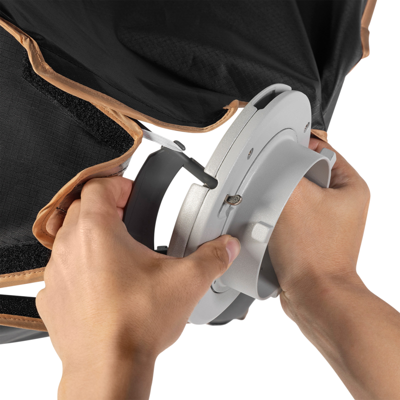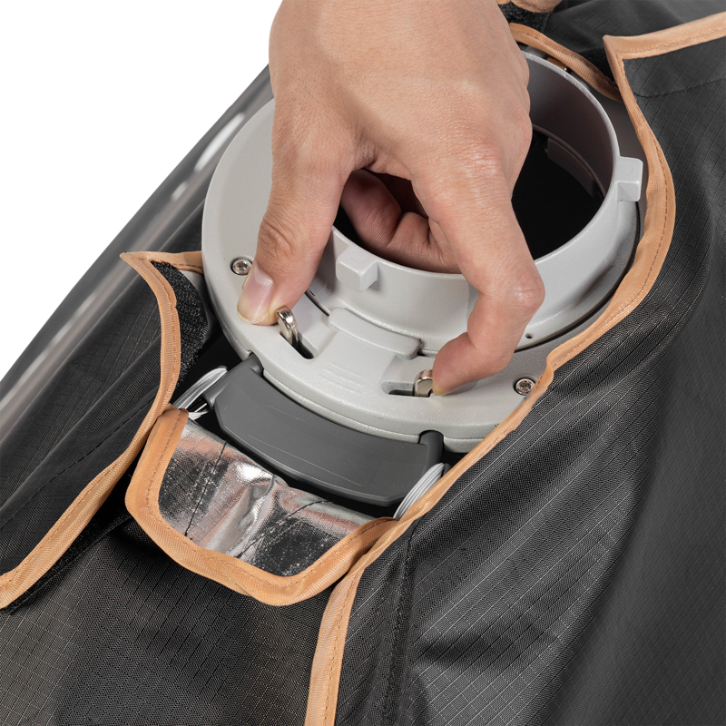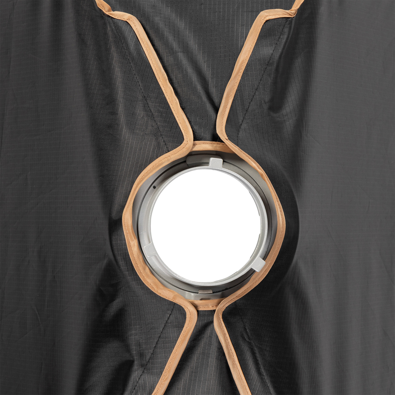 Mukana tuleva 90° hunajakennosäleikkö auttaa hallitsemaan valon leviämistä tarkasti, mikä tekee softboxista erinomaisen valinnan esimerkiksi muotokuvaukseen tai tuotekuvaukseen.