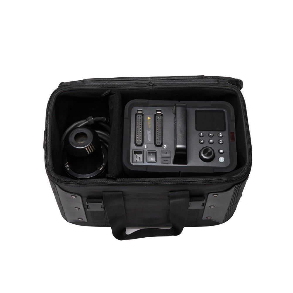 Vahvistetut reunat tuovat lisäsuojaa, ja pitkä olkahihna helpottaa kantamista. Laukun ulkopuolelle voi kiinnittää myös valojalustoja, mikä tekee kokonaisuudesta erittäin monikäyttöisen liikkuvaan tuotantoon.